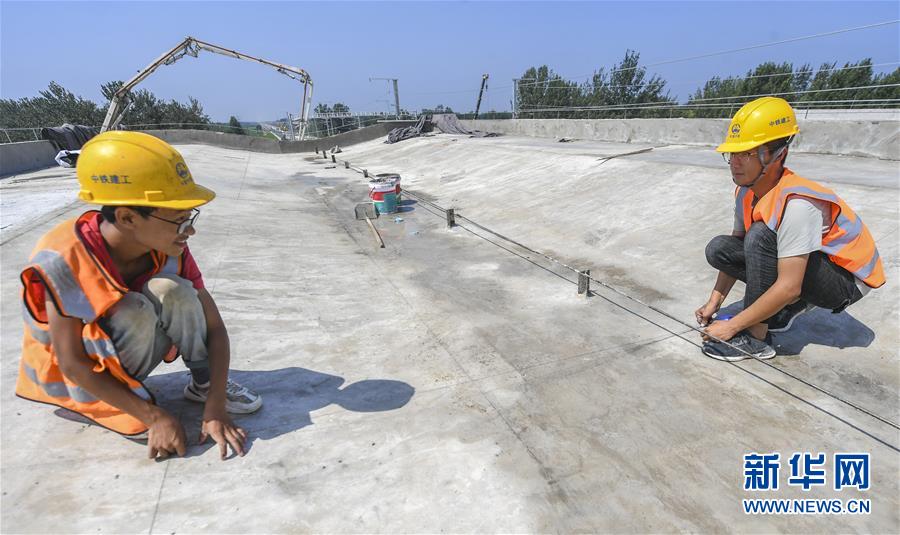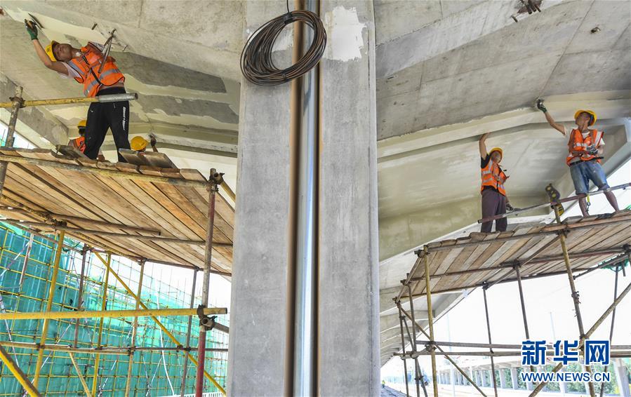 8月10日,工人在京雄城際鐵路霸州北站建設(shè)工地為雨棚梁底抹膩?zhàn)印>┬鄢请H鐵路霸州北站站臺(tái)雨棚混凝土結(jié)構(gòu)施工日前全部完成,目前霸州北站已全面轉(zhuǎn)入裝飾裝修和機(jī)電安裝階段,預(yù)計(jì)2020年底投入使用。京雄城際鐵路是連接北京市區(qū)、大興機(jī)場(chǎng)和雄安新區(qū)的重要干線。建成后,將進(jìn)一步完善京津冀區(qū)域高速鐵路網(wǎng)結(jié)構(gòu),便利沿線群眾出行,對(duì)于推動(dòng)京津冀協(xié)同發(fā)展和支撐建設(shè)雄安新區(qū)具有重要意義。新華社記者李曉果攝。
