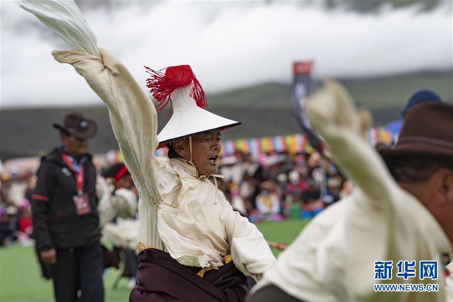 8月10日,當(dāng)雄縣牧民在為參加拔河比賽的隊(duì)友加油助威。新華社記者普布扎西攝。