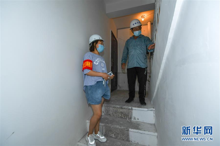 8月11日,在鎮(zhèn)賚縣慶生社區(qū)一老舊小區(qū)內(nèi),工程監(jiān)理和社區(qū)網(wǎng)格員檢查改造后的樓內(nèi)設(shè)施。2019年底開始,吉林省白城市鎮(zhèn)賚縣對(duì)超過20年房齡的老舊小區(qū)進(jìn)行全面改造升級(jí),優(yōu)先完成樓體內(nèi)外墻面、樓頂防水、道路硬化工程,并協(xié)調(diào)各職能部門對(duì)地下管網(wǎng)、綠化美化等基礎(chǔ)設(shè)施問題進(jìn)行統(tǒng)籌施工,減少后期二次施工造成的環(huán)境破壞和資源浪費(fèi)。一期工程預(yù)計(jì)于今年10月完工,施工完成后,政府相關(guān)部門將為這些小區(qū)統(tǒng)一配備物業(yè)公司,解決后期設(shè)施維護(hù)問題。新華社記者張楠攝