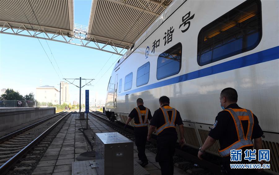 8月12日,長春火車站客運(yùn)車間上水班組趕往下一個作業(yè)站臺。新華社記者 林宏 攝