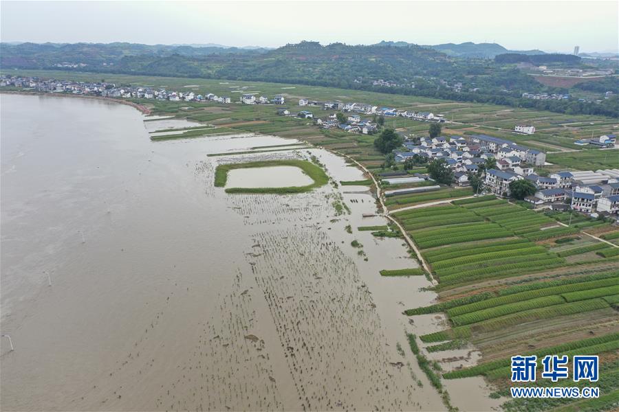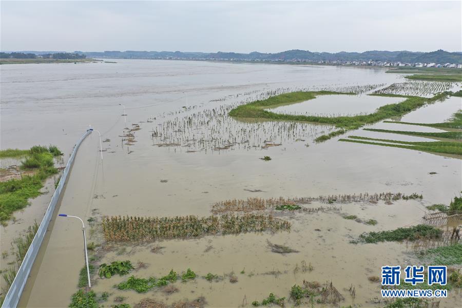 8月12日,重慶市潼南區(qū)桂林街道雙壩村蔬菜基地,部分低洼地帶的農(nóng)作物被洪水淹沒(無(wú)人機(jī)照片)。受強(qiáng)降雨影響,涪江潼南段迎來(lái)過(guò)境洪水。新華社記者 黃偉 攝