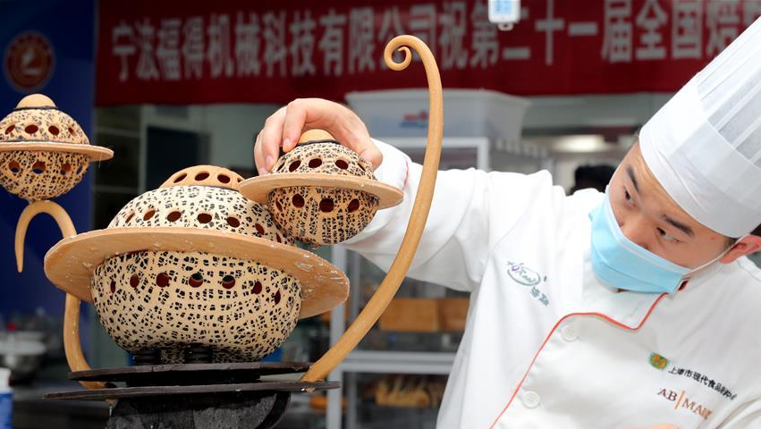 當日,第二十一屆全國焙烤職業(yè)技能競賽上海賽區(qū)選拔賽,在上海市現(xiàn)代食品職業(yè)技能培訓中心舉行,來自上海、江蘇、浙江等地的近60名焙烤行業(yè)技師,在藝術面包、傳統(tǒng)糕點、糖藝和藝術巧克力等項目中進行比拼,在充滿焙烤香氣的賽場上展現(xiàn)技藝。