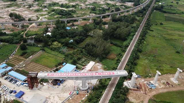 8月12日,由中鐵一局承建的水蚌鐵路蚌埠段改線工程東站疏解線特大橋跨越京滬鐵路上行線64米T構轉體梁成功實現(xiàn)轉體。