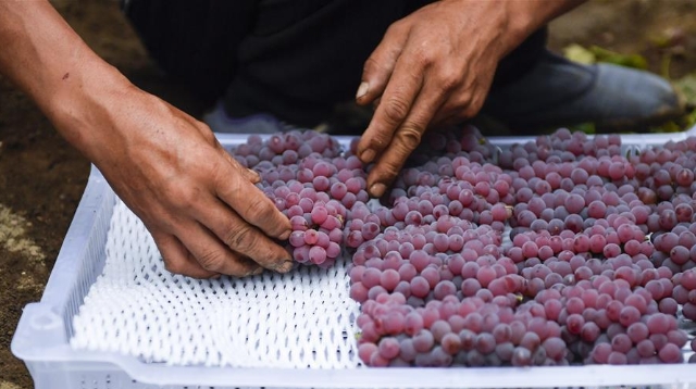 近年來,當?shù)赝ㄟ^“共創(chuàng)”與“扶持”相結合的模式大力發(fā)展特色農業(yè),建設葡萄種植大棚300余棟,以此帶動村集體經濟發(fā)展,助力農民增收致富。