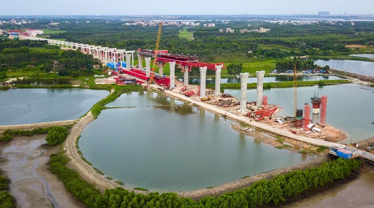 湛江調(diào)順跨海大橋的東岸主塔墩承臺日前順利建成,大橋步入主塔塔柱施工階段。