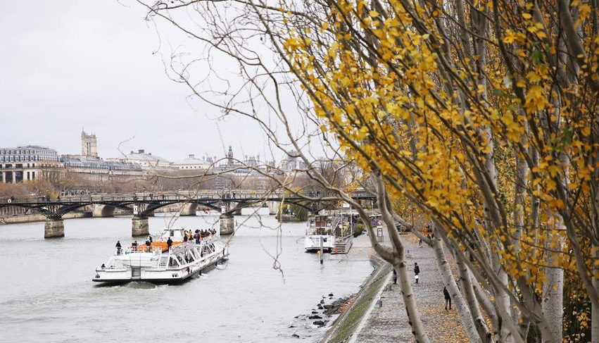 在法國(guó)巴黎,游船在塞納河上行駛。