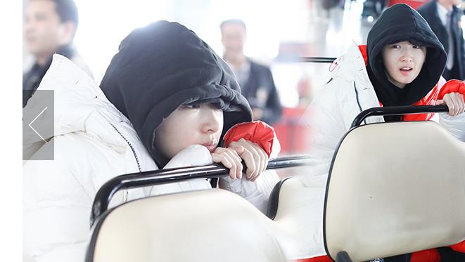 1月23日,北京,周冬雨現(xiàn)身機場。她用黑色連衣帽罩頭襯托巴掌臉,把下巴擱在行李車推桿上的雙手上呆萌可愛 。