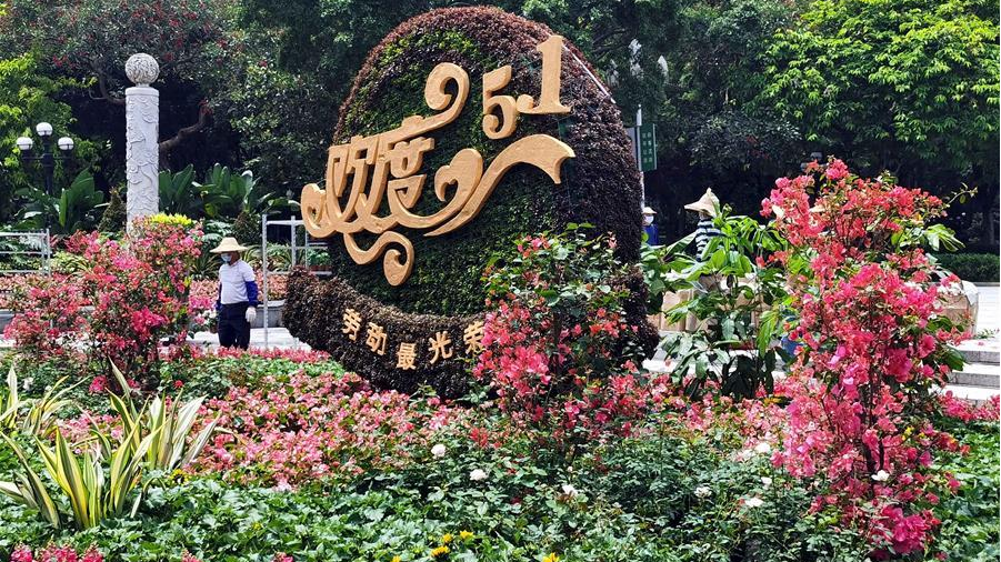 “五一”假期臨近,廣州市林業(yè)園林部門在廣州市中心人民廣場設置主題花壇,用鮮花綠植裝點節(jié)日街頭。