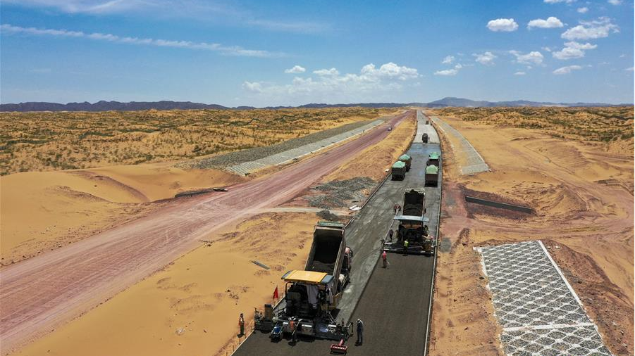 盛夏時節(jié),位于寧夏境內(nèi)的烏瑪(內(nèi)蒙古烏海市至青?,斍呖h)高速青銅峽至中衛(wèi)段正在抓緊施工建設。