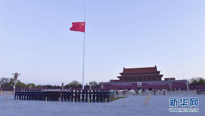 4月4日,北京天安門廣場降下半旗,表達(dá)對抗擊新冠肺炎疫情斗爭犧牲烈士和逝世同胞的深切哀悼。
