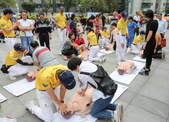 深圳市賽場(chǎng)救護(hù)隊(duì)的專業(yè)人員在現(xiàn)場(chǎng)為蓮花一村的社區(qū)居民普及了大眾急救技能,并指導(dǎo)大家進(jìn)行模擬心肺復(fù)蘇的演練,中老年朋友則享受了免費(fèi)的體質(zhì)檢測(cè)服務(wù)。