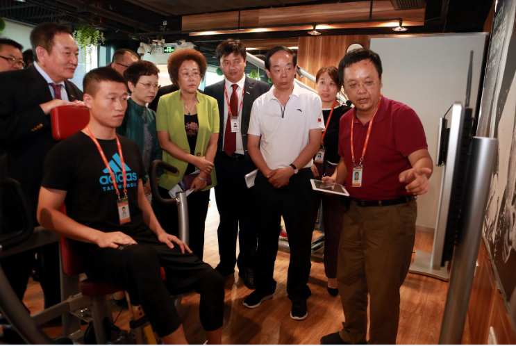 調(diào)研的最后一站選擇了位于南山區(qū)方大大廈的深圳泰山體育科技股份有限公司,調(diào)研組實地參觀調(diào)研了該公司重金研發(fā)的智能國民體質(zhì)檢測一體機和智能科學(xué)健身館。