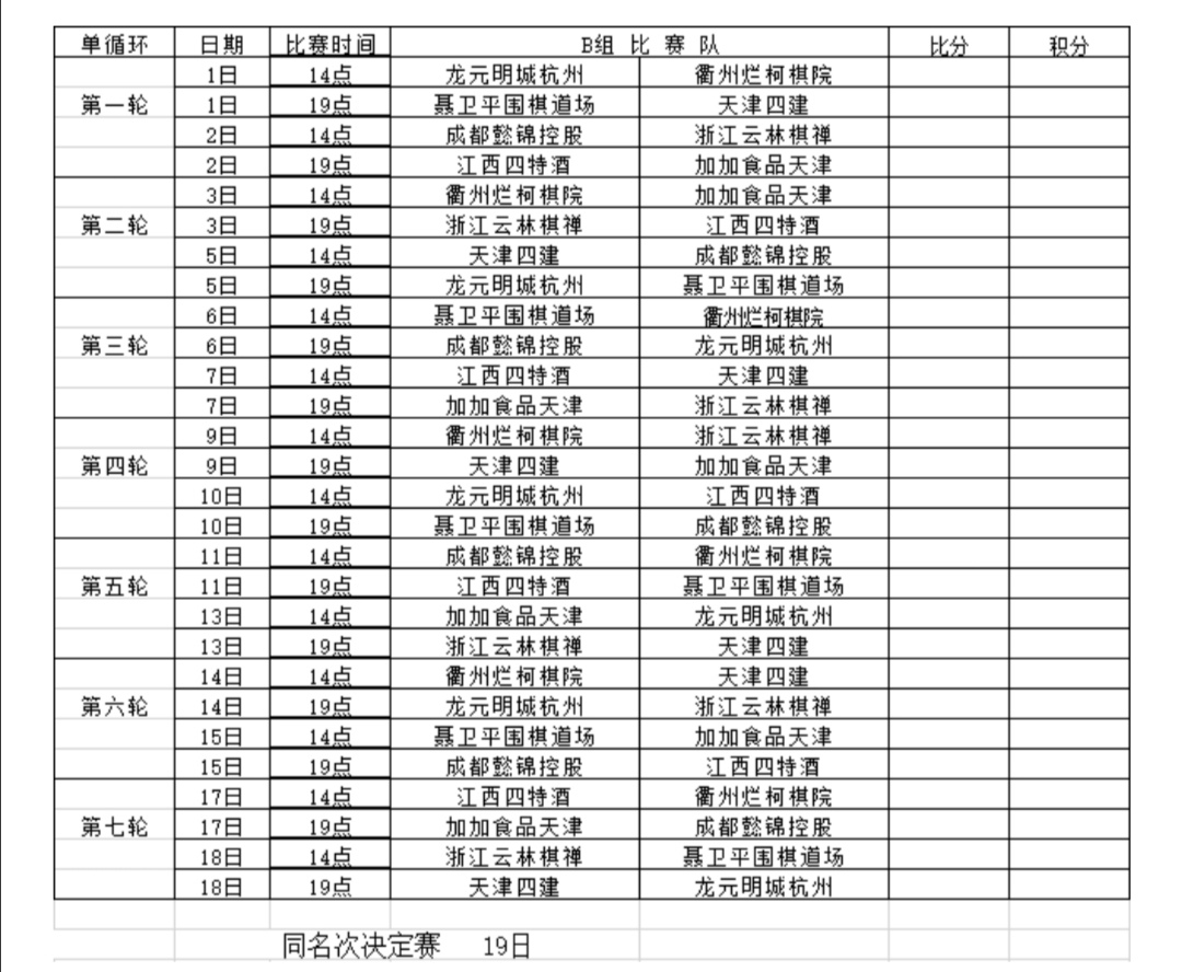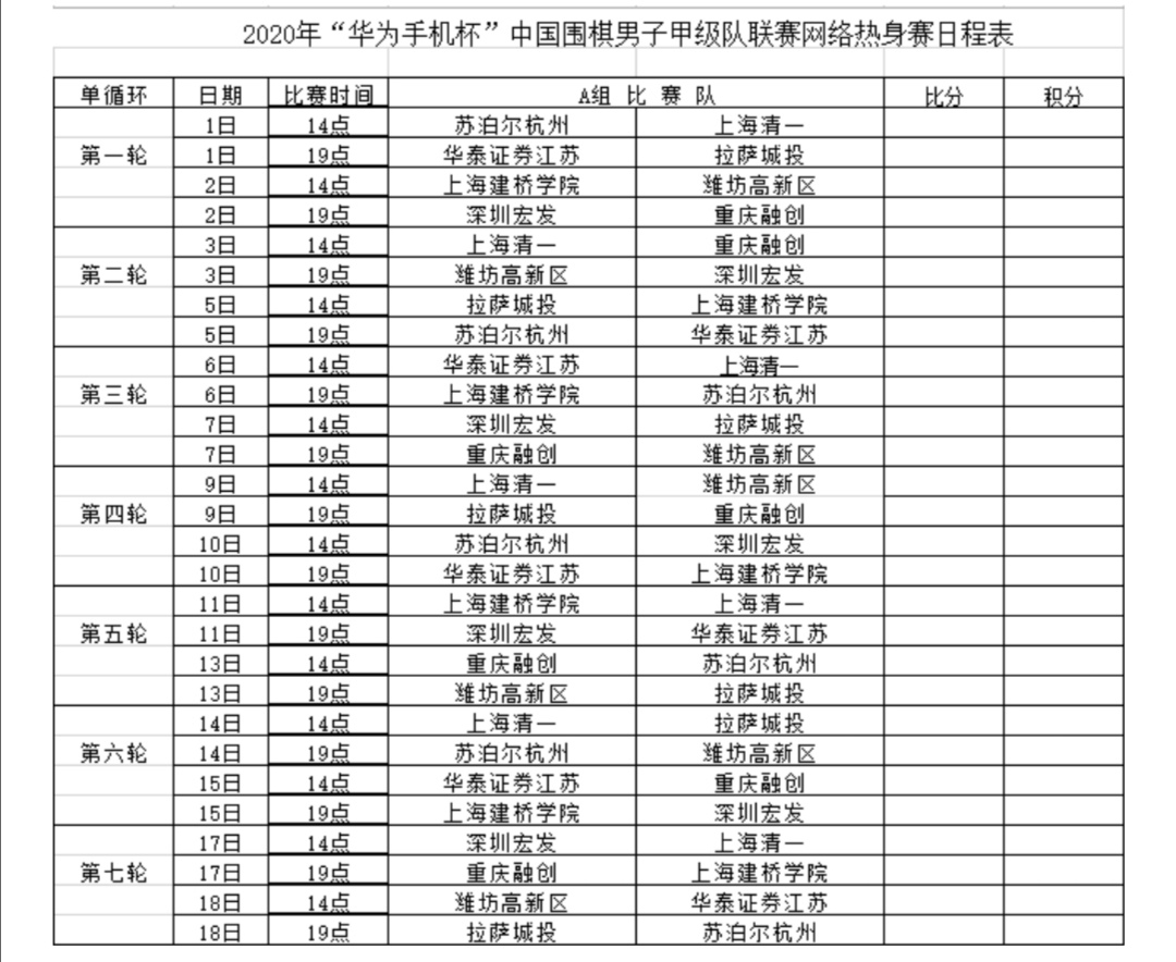 附2:2020年“華為手機(jī)杯”中國圍棋男子甲級隊聯(lián)賽網(wǎng)絡(luò)熱身賽AB兩組日程表
