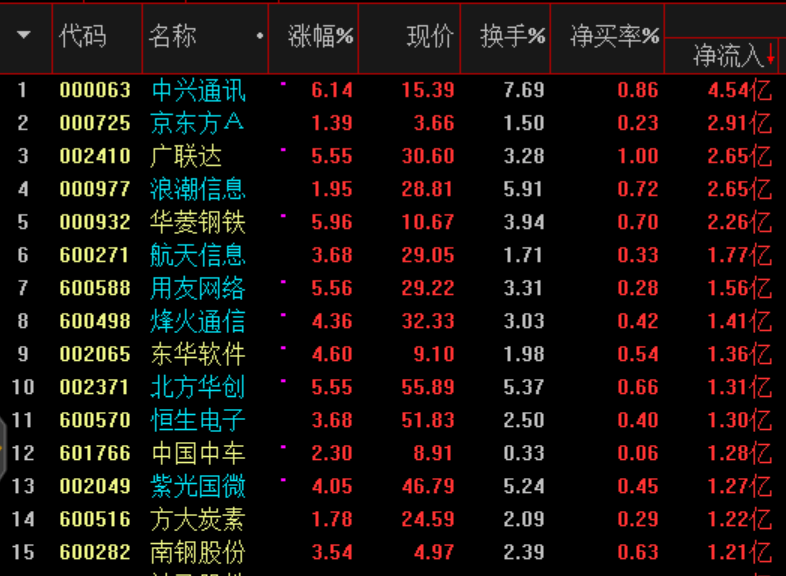科技股獲得資金青睞,金融、消費資金流出明顯。