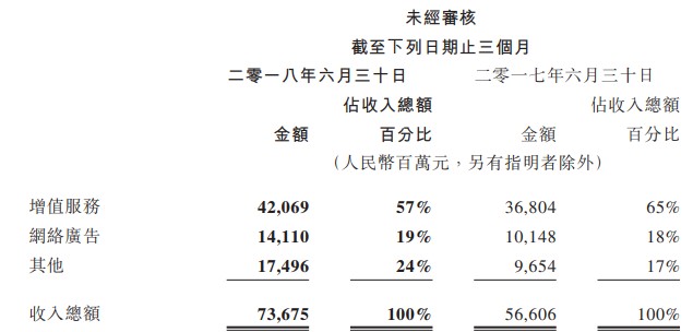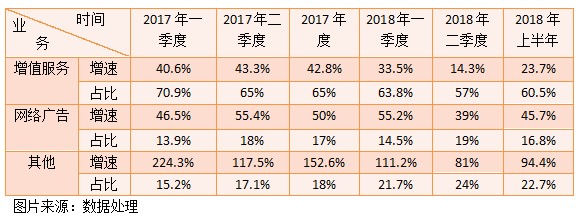 下面我們看該公司業(yè)務收入的變化,先看大類分錄,有增值業(yè)務、網絡廣告和其他業(yè)務。