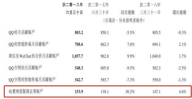 騰訊的網絡游戲和社交網絡緊密關聯,流量引入需要靠社交網絡,主要有QQ和微信兩大導流社交利器。2018年上半年,QQ月活躍用戶8.032億戶,同比下滑5.5%,而微信月活躍用戶達10.577億戶,同比增長9.9%。中國14億人口,流量基本被QQ和微信吸走了,且粘性非常高,主要是沒有可以匹敵的競爭對手。