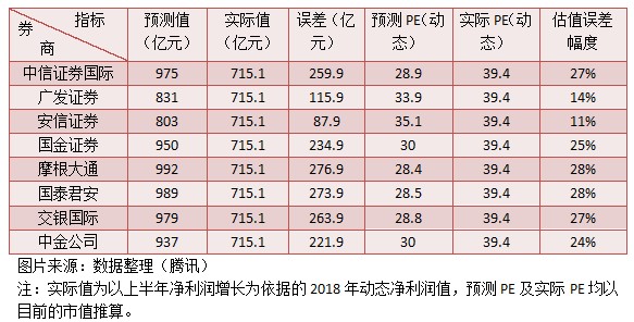 騰訊的打臉程度要比舜宇光學輕的多,最小的估值誤差為11%,最大的為28%,券商總是把估值看的高一些,這樣打臉程度讓很多券商不會很難堪。以騰訊ADR的表現,16日該公司的股價不會很理想,而且參照美股前晚的表現,恒指可能要遭受較大的跌幅沖擊。