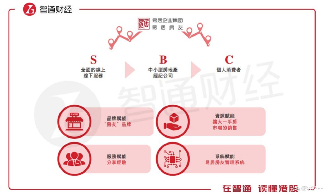 易居房友S2B2C的模式之新在于它不直接開展二手房經(jīng)紀(jì)業(yè)務(wù),也不開設(shè)二手房經(jīng)紀(jì)公司,而是賦能并整合房友品牌下的中小微房地產(chǎn)經(jīng)紀(jì)公司,向中小微房地產(chǎn)經(jīng)紀(jì)公司(B)提供在線線下綜合服務(wù)(S),以幫助其更好的服務(wù)個(gè)人客戶(C)。