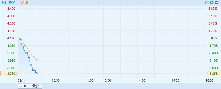 智通財(cái)經(jīng)APP獲悉,今日早盤A股鋼鐵板塊低開(kāi)低走,現(xiàn)鋼鐵板塊跌超3%,馬鋼股份(600808)跌逾6%,受此影響,港股馬鞍山鋼鐵股份(00323)也跟隨下跌,截至10時(shí)02分,跌8.25%,報(bào)價(jià)3.78港元,成交額9244萬(wàn)。