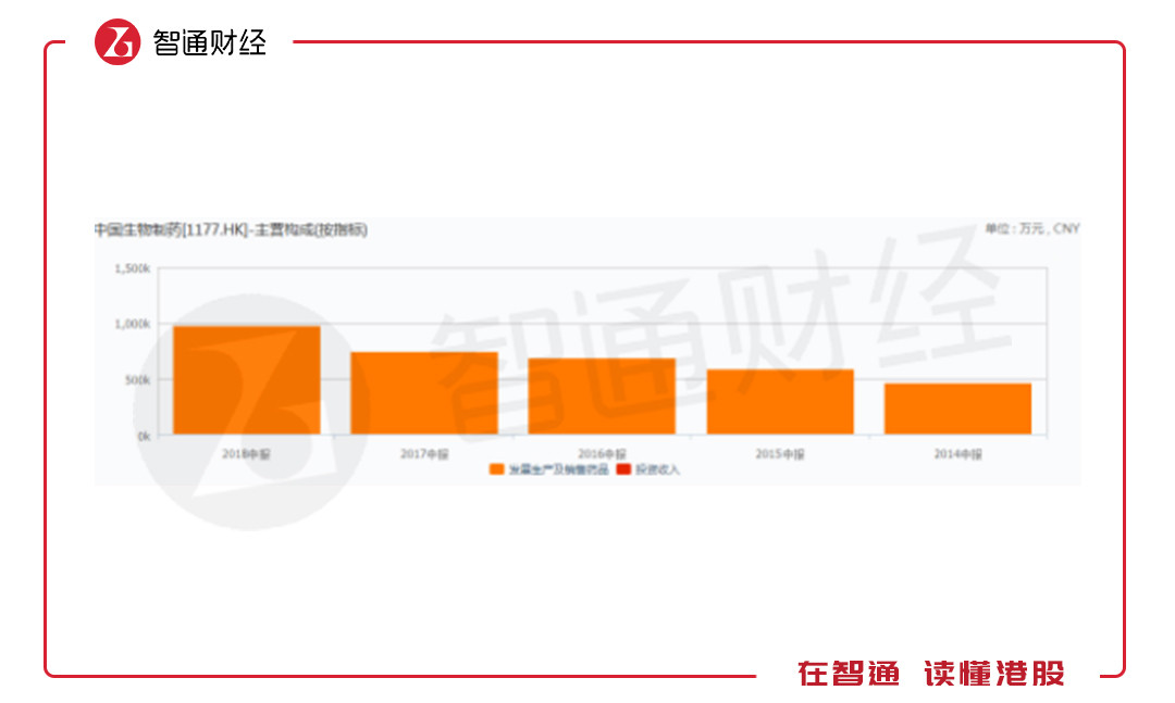 再說中國生物制藥,2018年中期的收入是97.25億,同比增長(zhǎng)30%;歸屬于母公司持有者應(yīng)占盈利約13.66億,同比增長(zhǎng)24.1%。期間計(jì)入權(quán)益投資和金融資產(chǎn)未實(shí)現(xiàn)公允價(jià)值利潤及虧損和海外匯兌差異凈額前,歸屬于母公司持有者應(yīng)占盈利約14.27億元,較去年同期增長(zhǎng)約41.9%。