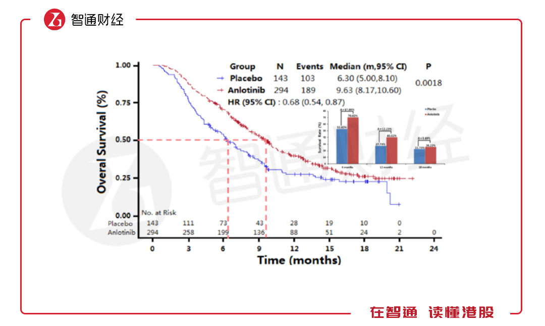 重點(diǎn)聊聊安羅替尼。嚴(yán)格意義上講,安羅替尼是該公司第一個(gè)按照國際研發(fā)流程和標(biāo)準(zhǔn)進(jìn)行研發(fā)的創(chuàng)新小分子藥。該藥在2007年申請(qǐng)獲得化合物專利,2010年7月申報(bào)臨床,2011年獲得臨床審批,2017年申報(bào)上市,受理號(hào)為CXHS1700001、CXHS1700002、CXHS1700003、CXHS1700004,之后很快納入優(yōu)先審批,但目前得到上市許可,可謂經(jīng)數(shù)了十年。