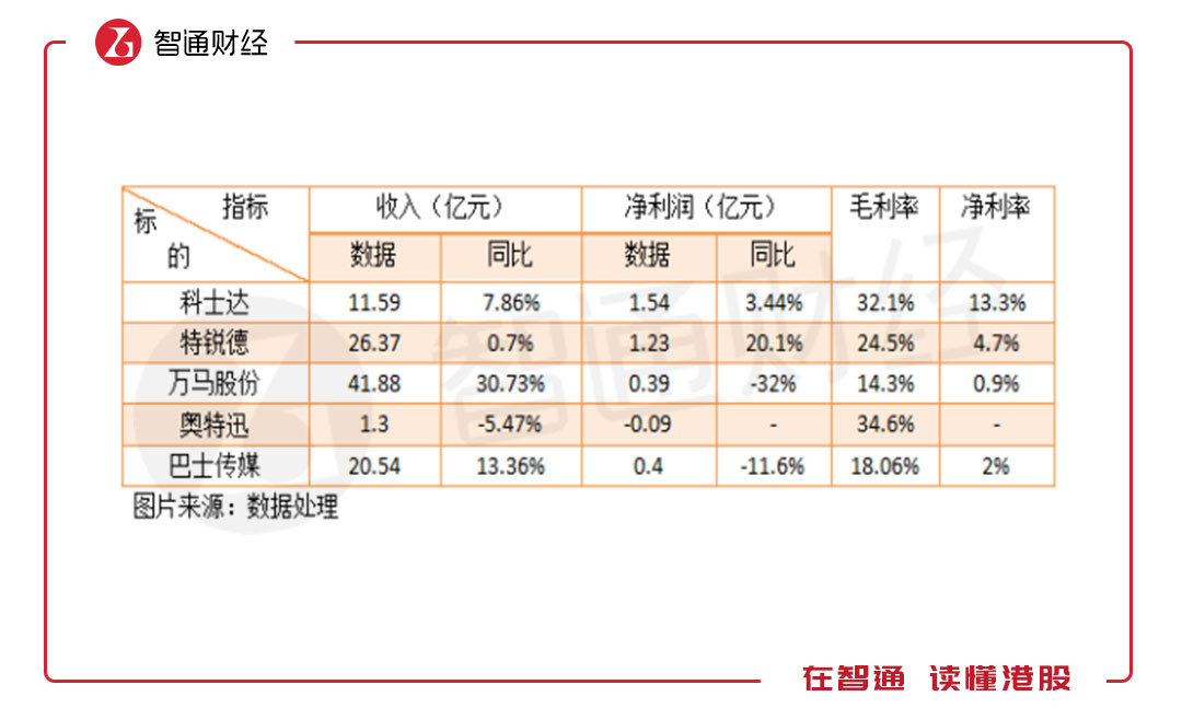 下游設(shè)備運營商主要是充電樁運營以及充電站的運營,參與者的業(yè)績相對來說比中游要好很多。參與者中,包括科士達、特銳德、萬馬股份、奧特迅以及巴士傳媒,當(dāng)然有些公司除了做充電樁運營之外也會存在其他業(yè)務(wù),整體來看,部分參與者還是存在正向增長的業(yè)績的,但整體的利潤率仍偏低。