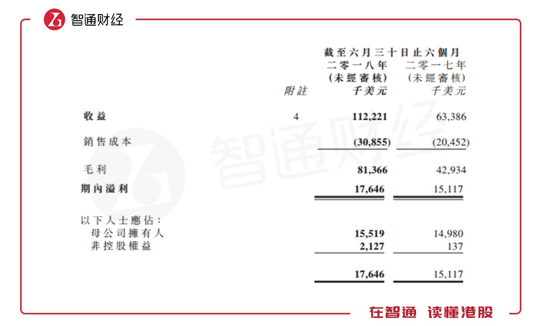 遠(yuǎn)的不說,就以今年中期為例,該公司收益1.12億美元(單位下同),同比增長77%;凈利潤1552萬,同比增長3.3%。毛利約為8140萬,較2017年同期的約4290萬增長89.7%。毛利率為72.5%,高于去年同期的67.7%。