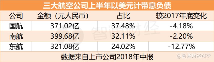 智通財(cái)經(jīng)APP了解到,2015年高峰時(shí),三大航空公司美元負(fù)債水平普遍在80%左右。2018年中期財(cái)報(bào)顯示,截止2018年6月30日,國(guó)航以美元計(jì)的帶息負(fù)債占帶息負(fù)債總額比重已經(jīng)降至37.48%,南航、東航的美元帶息負(fù)債占比也分別降至32.11%、24.02%。絕對(duì)金額方面,目前以人民幣計(jì)美元有息負(fù)債規(guī)模,國(guó)航為371.02億、南航399.68億、東航321.08億。