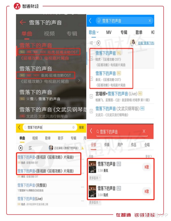 以此前熱播劇《延禧攻略》的片尾曲《雪落下的聲音》為例。這首歌的版權(quán)由QQ音樂獨(dú)家擁有,并在APP中擁有“獨(dú)家”的標(biāo)識(shí)。但實(shí)際上,該歌曲在酷狗音樂、酷我音樂和全民K歌上同樣可以播放,可以說騰訊音樂版權(quán)在公司旗下4個(gè)產(chǎn)品是通用的。