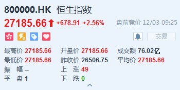 智通財(cái)經(jīng)APP獲悉,周日市場(chǎng)傳來(lái)好消息,G20峰會(huì)上中美元首在貿(mào)易摩擦議題上,中美雙方取得了積極進(jìn)展,對(duì)股市來(lái)說(shuō)是一個(gè)極大的利好,短期內(nèi)市場(chǎng)投資氛圍會(huì)得到改善。恒生指數(shù)開(kāi)盤漲2.56%,報(bào)27185.66點(diǎn)。國(guó)企指數(shù)漲3.05%,報(bào)10945.67點(diǎn)。紅籌指數(shù)漲2.29%,報(bào)4437.84點(diǎn)。大市盤前成交76.02億港元。