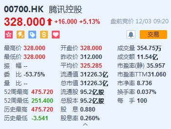 藍(lán)籌方面,騰訊(00700)早盤漲5.13%,報(bào)328港元,大市盤前成交額為11.54億港元。其他重磅藍(lán)籌方面,瑞聲科技(02018)漲5.95%,報(bào)58.75港元,中海油(00883)漲5.86%,報(bào)14.08港元,中石油(00386)漲4.92%,報(bào)5.76港元,中石化(00386)漲3.76%,報(bào)6.9港元。