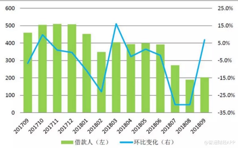 從統(tǒng)計數(shù)據(jù)可以看出,從今年6月開始,P2P網(wǎng)貸行業(yè)借款人人數(shù)出現(xiàn)大幅下滑,重疊上圖正是行業(yè)監(jiān)管加強(qiáng)開始的時間點。到了9月,借款人人數(shù)首次開始回升,說明市場已經(jīng)感受到監(jiān)管后行業(yè)規(guī)范化的提高,這正說明市場對P2P行業(yè)信心正在出現(xiàn)回升。