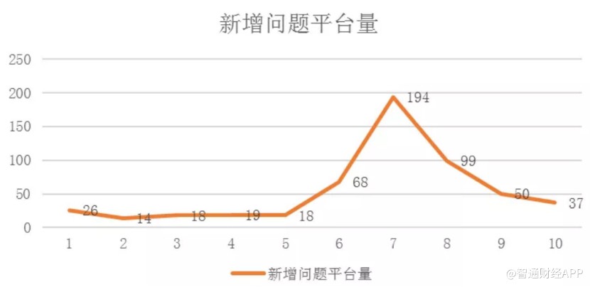 自從監(jiān)管加強(qiáng)行業(yè)規(guī)范和引導(dǎo)后,P2P問題平臺便不斷被爆出。智通財經(jīng)APP了解到,今年6月以來,國內(nèi)新增問題平臺逐漸增多,并在7月份達(dá)到最多的194家,但到10月份新增問題平臺的數(shù)量卻已經(jīng)低至37家。也就是說,在新的監(jiān)管強(qiáng)度下,又有一批問題公司得以治理,行業(yè)整合進(jìn)程已經(jīng)被加速。