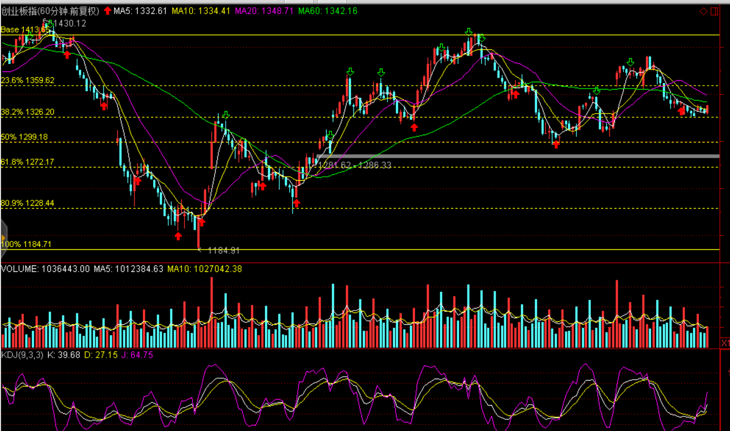 技術(shù)面:短期企穩(wěn)回升,弱勢反彈,60分鐘黃金分割線滬綜指2604點(diǎn)、2641點(diǎn)、創(chuàng)業(yè)板1360點(diǎn)一線存在壓力。