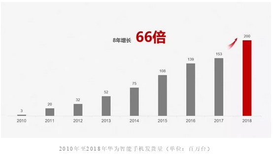 據(jù)了解,華為智能手機(jī)發(fā)貨量從2010年的300萬臺增長到2018年的2億臺,增長約66倍;從全球智能手機(jī)市場的“Others”躋身全球TOP3智能手機(jī)廠商,并在2018年第二季度和第三季度,成為全球第二大智能手機(jī)廠商,全球市場份額達(dá)到14.6% (*IDC全球智能手機(jī)市場份額,2018年第三季度)。