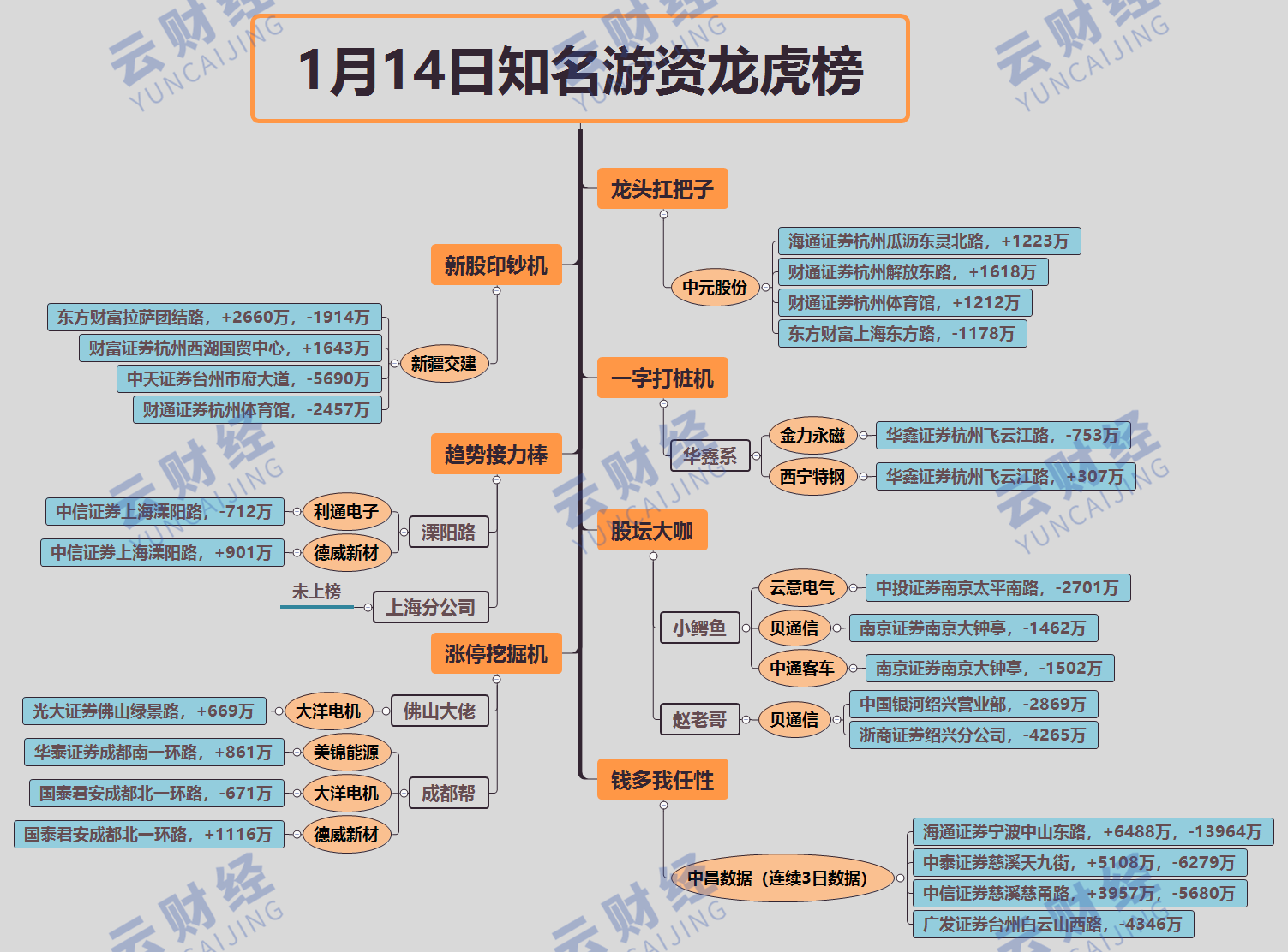 其他游資方面,趙老哥兩席位合計(jì)賣出貝通信(603220)7134萬,小鱷魚賣出云意電氣(300304)、貝通信(603220)、中通客車(000957)各2701萬、1462萬、1502萬,佛山幫買入大洋電機(jī)(002249)669萬。