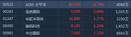 智通財(cái)經(jīng)APP獲悉,昨日芯片股受市場(chǎng)追捧,集體大漲。今日早盤(pán)板塊漲勢(shì)延,截至9時(shí)57分,ASM太平洋(00522)漲6.79%,報(bào)價(jià)80.95港元,華虹半導(dǎo)體(01347)、瑞聲科技(02018)及中芯國(guó)際(00981)升逾1%。