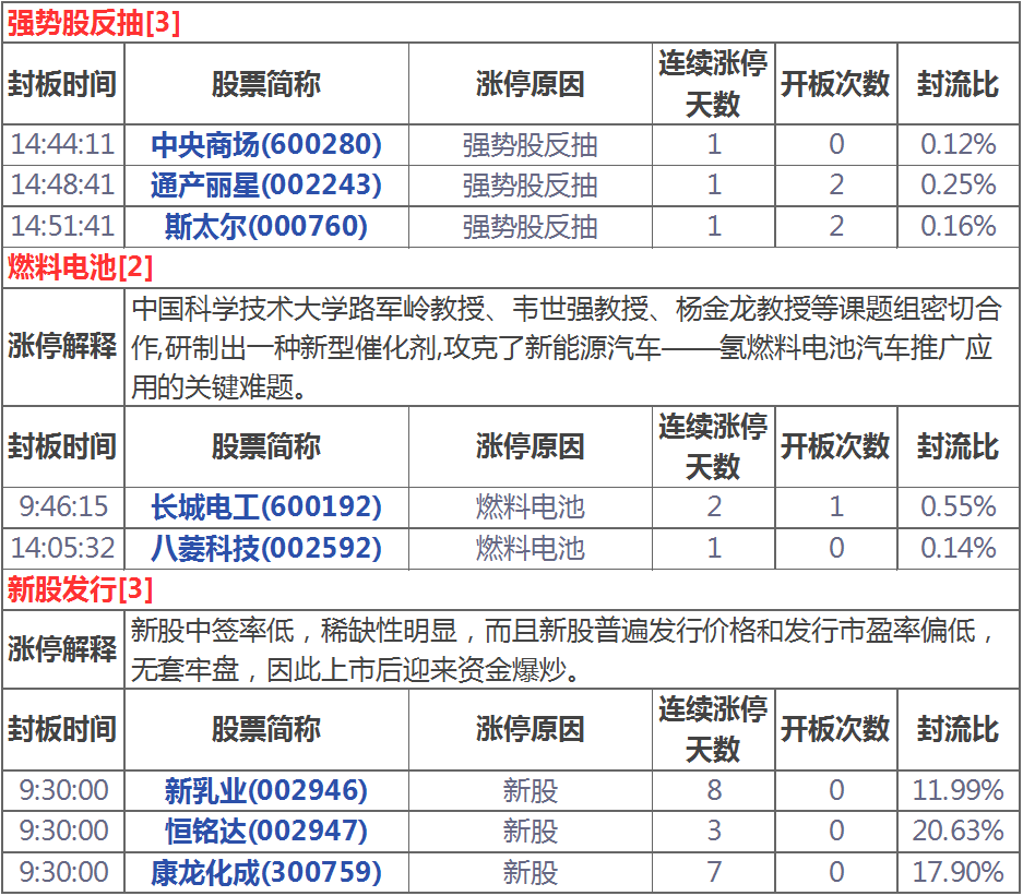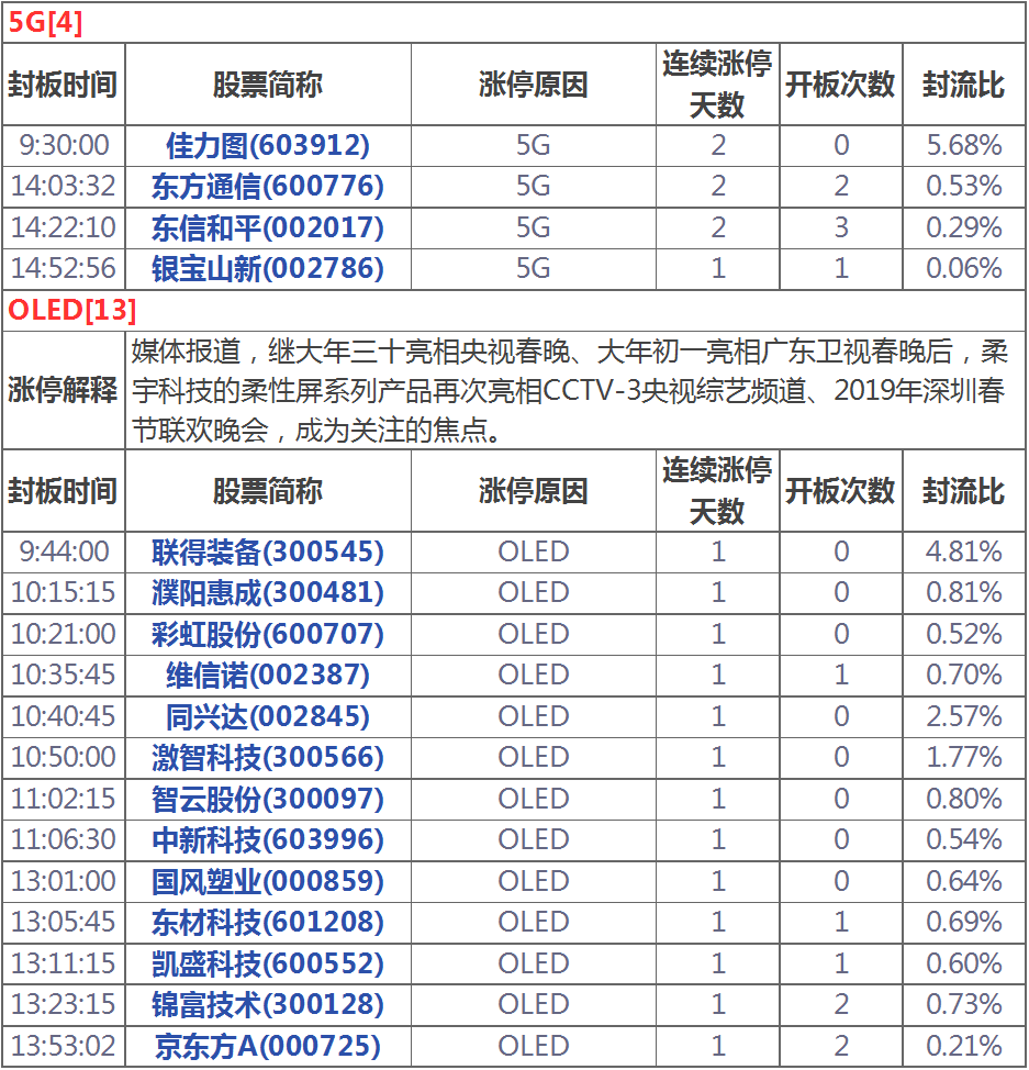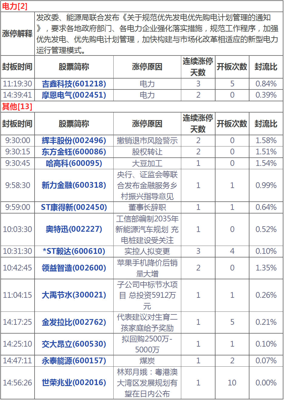 今天漲停家數較上一交易日有所減少,兩市75家漲停,跌停1家。成交量方面,滬市成交1567億元,深市成交2085億元,兩市總成交額約為3652元,較上一交易日放量453億元。盤面上板塊普漲,OLED、醫(yī)藥、天津自貿區(qū)、氟化工等板塊漲幅居前。