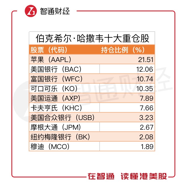 截至12月末,伯克希爾的十大重倉(cāng)股分別為蘋果、美國(guó)銀行、富國(guó)銀行、可口可樂(lè)、美國(guó)運(yùn)通、卡夫亨氏、美國(guó)合眾銀行、摩根大通、紐約梅隆銀行及穆迪。
