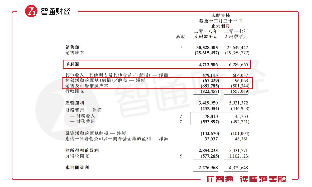 此次業(yè)績(jī)大幅下滑主要由原材料成本上升及產(chǎn)品售價(jià)下跌所致,雖銷售額同比增長(zhǎng),但也擋不住毛利潤(rùn)下降拖動(dòng)盈利下滑。除此之外,經(jīng)營(yíng)活動(dòng)匯兌損益同比下降170%,銷售及市場(chǎng)推廣成本同比增長(zhǎng)了75.88%,也拉低了經(jīng)營(yíng)盈利的整體增速。