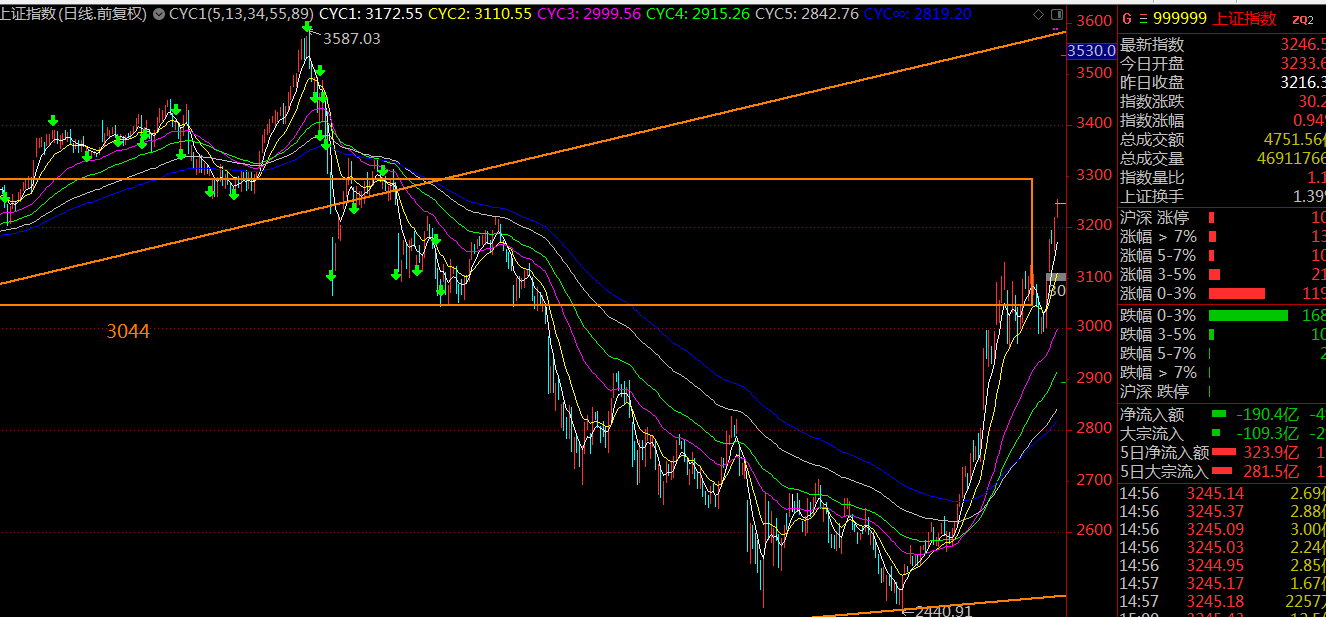 日線看,上證指數(shù)這里接近大級(jí)別中樞的上軌3295點(diǎn),這里短線大概率會(huì)震蕩回落,一蹴而就的可能性不大。