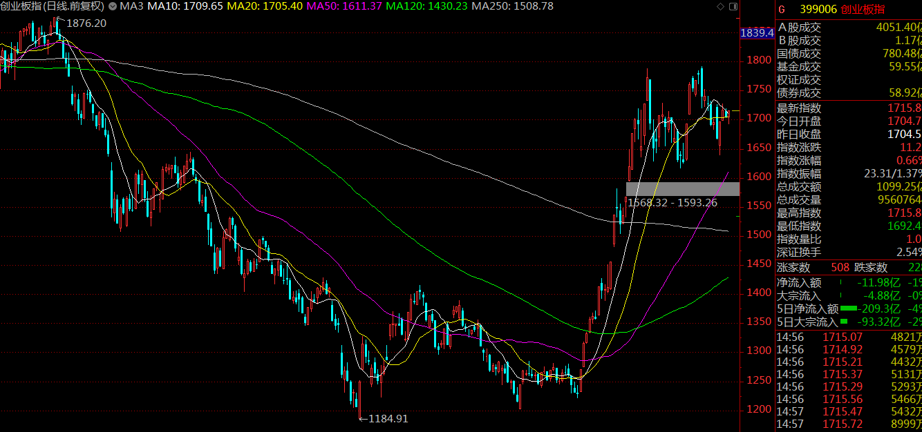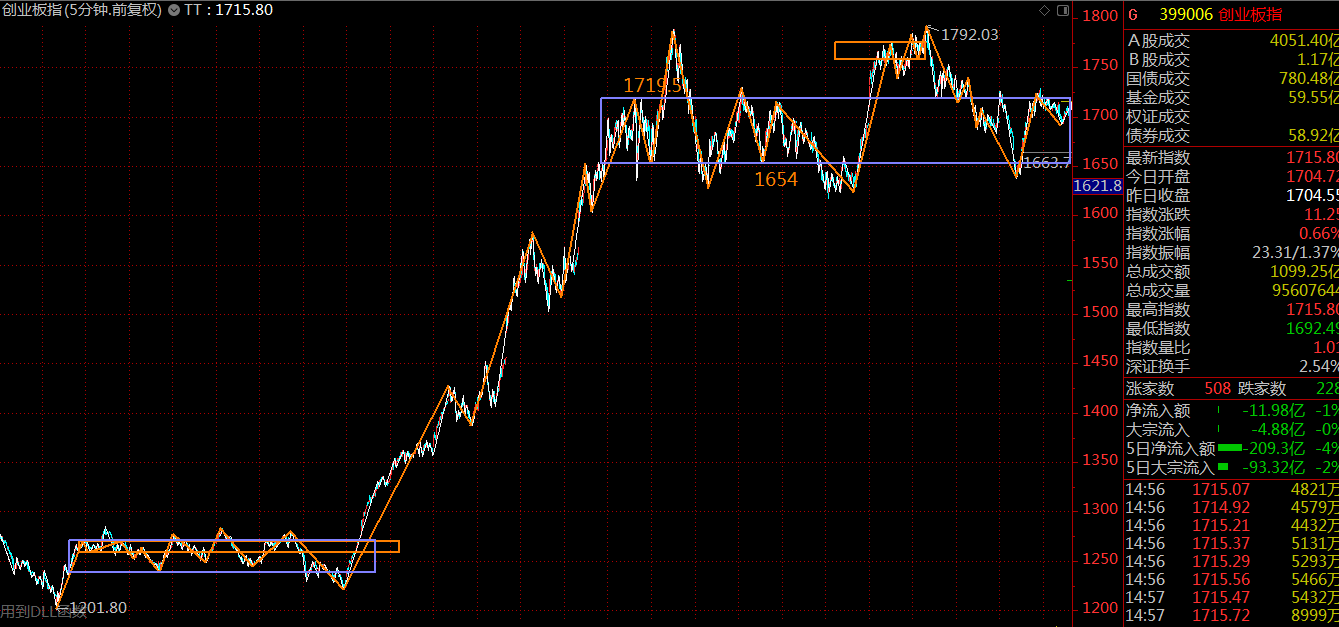 創(chuàng)業(yè)板這里走弱了已經(jīng),上周一、周二的調(diào)整打到了中樞下軌,這是一次警告,上拉后始終不能站上中樞上軌,是為弱勢,本周關(guān)注1654點(diǎn)的支撐,謹(jǐn)防第三類賣點(diǎn)的出現(xiàn)。