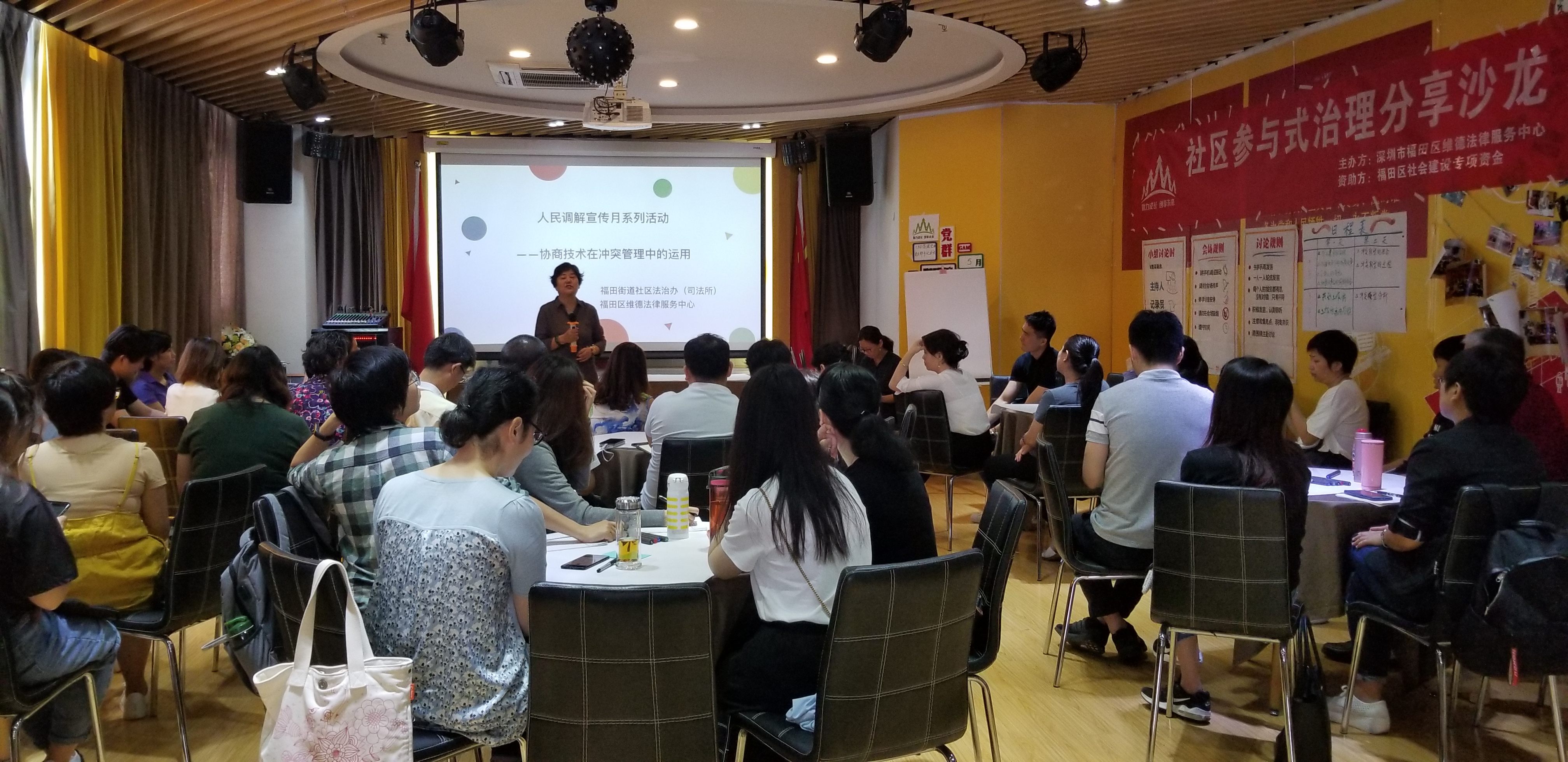 5月15-16日,由“福田區(qū)社會(huì)建設(shè)專項(xiàng)資金”資助的社區(qū)議事能力建設(shè)項(xiàng)目在福田區(qū)福田街道“白領(lǐng)e家”開(kāi)展,來(lái)自福田區(qū)各個(gè)社區(qū)的人民調(diào)解員、社區(qū)法律顧問(wèn)、社會(huì)工作者以及深圳市福田區(qū)維德法律服務(wù)中心邀請(qǐng)的志愿律師等80余人次參與了本次“社區(qū)參與式治理分享沙龍”。福田區(qū)街道黨委副書記、人大工委主任劉原鑣、深圳市福田區(qū)維德法律服務(wù)中心執(zhí)行主任李嚴(yán)出席了分享沙龍啟動(dòng)儀式。