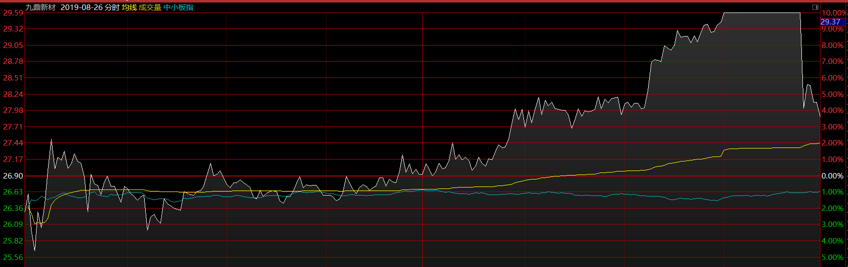 今年的市場有個特征,總是因為某個人的一兩句話而大幅波動,好在市場對貿(mào)易摩擦的相關(guān)消息已逐漸變得不再敏感,消息次日市場跌幅也逐步減小。在周末貿(mào)易摩擦升溫消息刺激下,上周一大盤低開,但低開幅度遠小于預(yù)期,市場也沒有出現(xiàn)恐慌的情況。尤其是高標股九鼎新材,在前一交易日尾盤大幅分化的情況下,周一早盤僅僅微幅低開兩個點,可以說這是一個明顯的抄底信號:市場這里跌不下去。