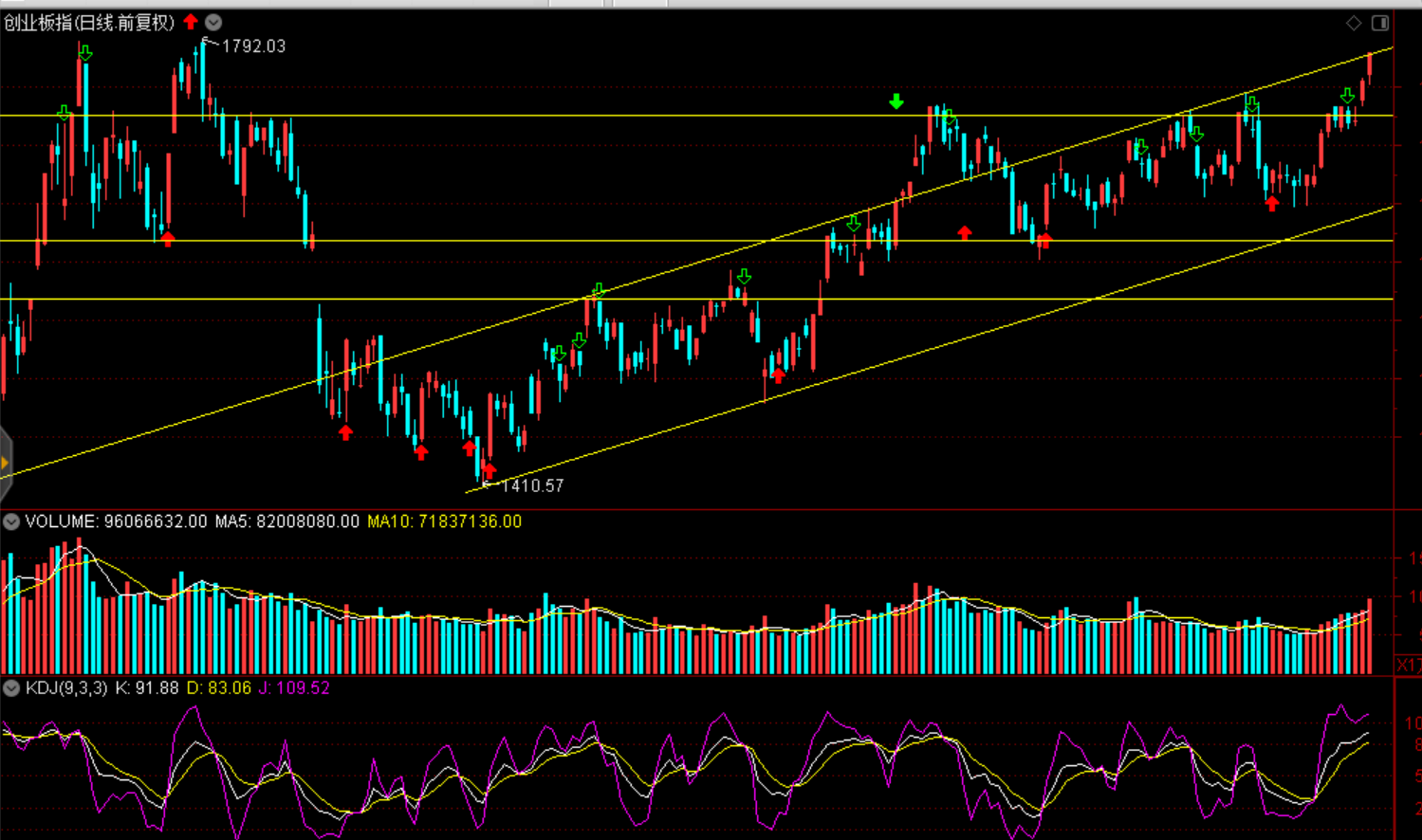 技術(shù)面:短期量?jī)r(jià)配合,延續(xù)震蕩反彈;滬弱深強(qiáng),創(chuàng)業(yè)板50作為市場(chǎng)風(fēng)向標(biāo),謹(jǐn)慎創(chuàng)業(yè)板50(399673)上檔面臨去年5月密集成交區(qū)壓力(1500點(diǎn)一線);創(chuàng)業(yè)板指數(shù)在此觸及自6月以來(lái)上升通道上軌,短期謹(jǐn)慎震蕩回落。