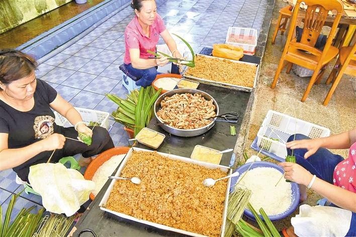 平時,玲姐是一位家庭主婦,每年端午節(jié)前她就變身為“包粽高手”。2017年,張長妹的酒家創(chuàng)下了銷售海膽粽4萬多條的紀(jì)錄,最高峰的一天足足包了4000多條海膽粽,玲姐一個人就包了1000條,也創(chuàng)下了個人紀(jì)錄?!皬脑缟?點包到晚上差不多12點,最后腰都快直不起來了?!绷峤阏f,從六七歲就開始看著家里的大人包海膽粽,南澳人包粽技巧都是靠耳濡目染,“小時候,家里老人不讓我們包糯米,只能用沙子來練習(xí)?!?/p>