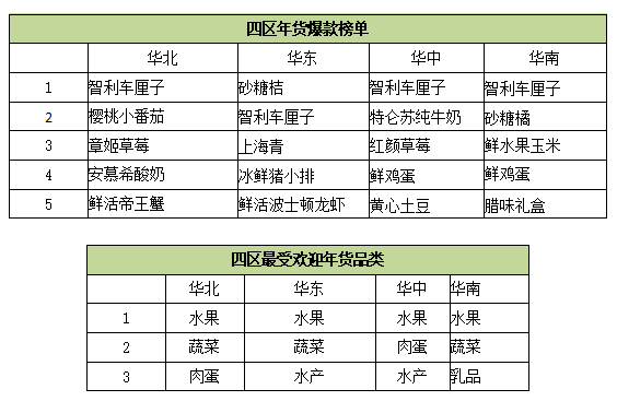 在已經(jīng)上線的每日優(yōu)鮮的華南年貨頻道里,水果、肉蛋、酒水等品類占據(jù)“大半壁江山”,特別是高端水果,占比從去年的20%提升到50%,最受喜愛的有車厘子、上上簽砂糖桔,此外受華南人民歡迎的年貨還包括雞蛋、箱裝牛奶和零食大禮包等。