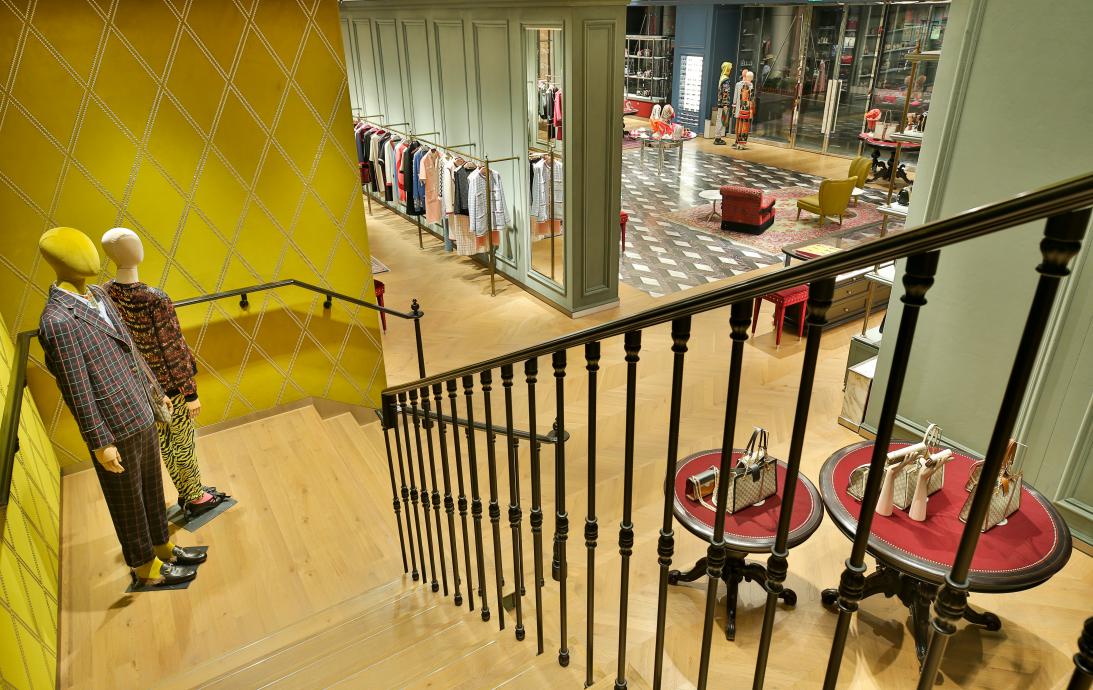 近日,古馳深圳萬象城店重裝開幕,呈現(xiàn)創(chuàng)作總監(jiān)亞力山卓 ·米開理的店鋪設(shè)計理念。