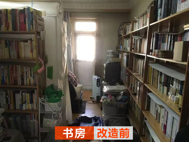 改造前的書房,書架不夠用,而且整個空間很昏暗。