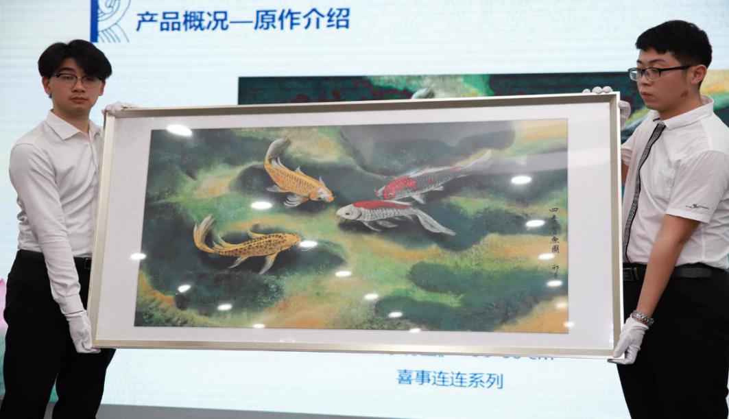 活動現(xiàn)場還展示了這三幅版畫產(chǎn)品的樣品——《喜事連連》、《四季有魚》、《觀音寶像》,該產(chǎn)品具有三大亮點:(一)藝術(shù)價值高;(二)投資潛力大;(三)稀缺性強。